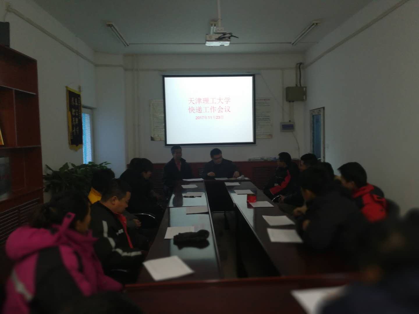 为深入贯彻落实市公安局、市教育两委关于校园快递综合治理工作精神,2017年11月23日下午3点在南创业楼109会议室召开在校快递服务经营单位会议,治安科负责人出席,全体在校快递负责人参加。?
